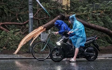 Bão Yagi gây mưa to, gió rít mạnh tại Hải Phòng, Quảng Ninh, Hà Nội… Cây xanh đã bị bão quật đổ; cửa kính nhà dân, mái tôn, bồn nước, bảng biển quảng cáo… rơi rụng, bay khắp nơi.