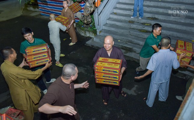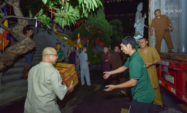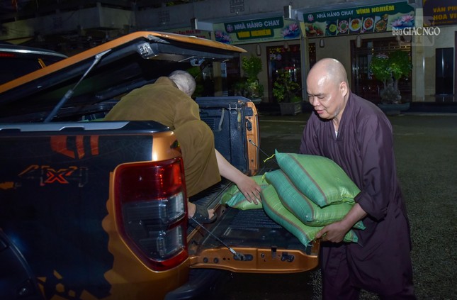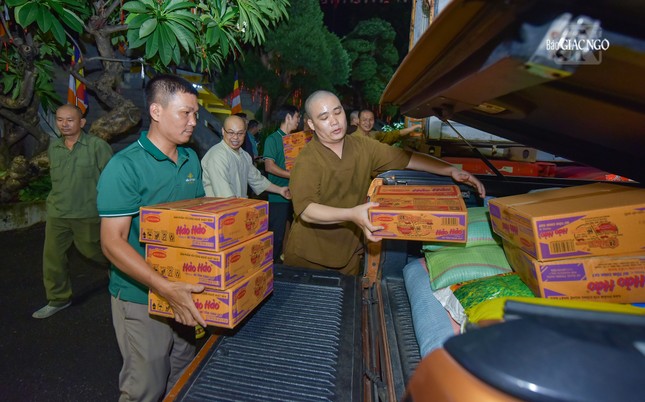 Phải đến hơn 2 giờ sáng, công việc mới hoàn thành, chuyến hàng đầu tiên của Phật giáo TP.HCM lăn bánh khởi hành mang yêu thương của Tăng Ni, Phật tử đến với người dân bị ảnh hưởng bão số 3 tại các tỉnh phía Bắc