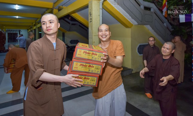 GNO – 23 giờ 30 phút tối 12-9, hơn 7.000 thùng mì cùng các nhu yếu phẩm được Tăng Ni, Phật tử tập kết và vận chuyển từ chùa Vĩnh Nghiêm (Q.3) ra các tỉnh thành phía Bắc. Đây là chuyến hàng đầu tiên của Phật giáo TP.HCM hướng về đồng bào ở các địa phương phía Bắc của đất nước bị thiệt hại do bão số 3 gây ra.