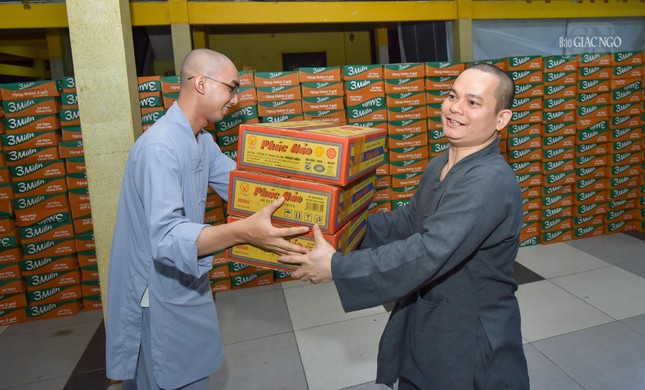 Hơn 7.000 thùng mì cùng các nhu yếu phẩm được Phật giáo TP.HCM ủng hộ, vận chuyển ra hỗ trợ người dân các tỉnh miền Bắc
