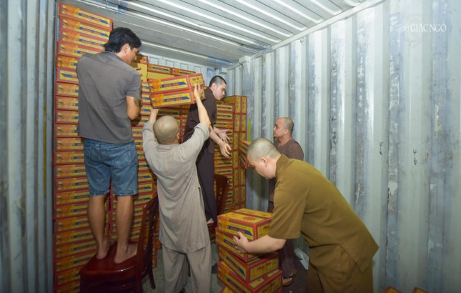 Giữa bộn bề công việc, Thượng tọa Thích Thanh Phong, Phó Chủ tịch Hội đồng Trị sự, Trưởng ban Kinh tế – Tài chính T.Ư, Trưởng ban Từ thiện xã hội GHPGVN TP.HCM vẫn trực tiếp tham gia bốc dỡ hàng tấn gạo, hàng ngàn thùng mì lên container. Hình ảnh đó càng tiếp thêm động lực, tinh thần cho các thành viên của Ban Kinh tế – Tài chính T.Ư, Ban Từ thiện xã hội GHPGVN TP.HCM cũng như chư Tăng chùa Vĩnh Nghiêm hoàn thành công việc nặng nhọc của mình.