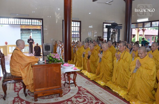 Theo đó, ngài chia sẻ kinh nghiệm tu học và nhấn mạnh mục tiêu của người xuất gia, đó là chuyển hóa và làm cho ba nghiệp thanh tịnh.