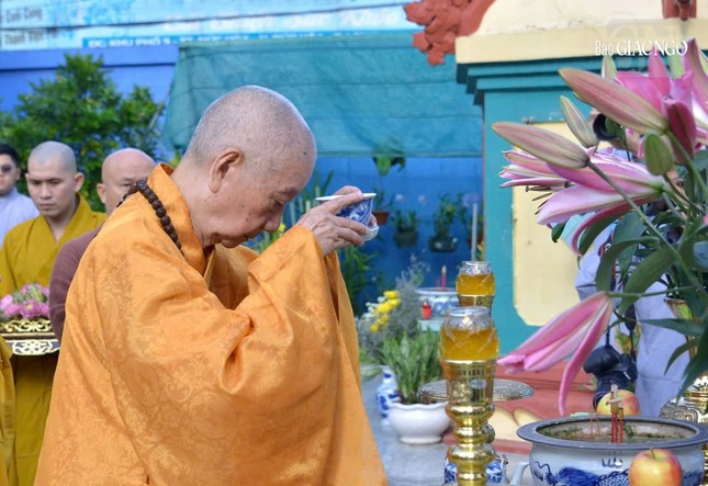 Tiếp đó, Ban Kinh sư cử hành nghi thức Phổ Phật cúng Ngọ theo truyền thống Phật giáo Nam bộ, đại chúng đồng vân tập Tổ đường hầu kỵ Tổ sư, dâng hương, cung hiến phạn thực, trà phẩm, trì tụng Bát-nhã tâm kinh cúng dường giác linh Tổ sư.