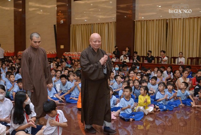 “Lẽ ra đêm hội trung thu năm nay có nhiều tiết mục vui tươi hơn nữa nhưng vì miền Bắc nước ta đang bị thiên tai thiệt hại nặng nề nên chúng ta cần chia sẻ, hướng đến các bạn thiếu nhi ở miền Bắc đang phải màn trời chiếu đất. Chúng ta cùng cầu nguyện cho các bạn của các cháu ở miền Bắc sớm ổn định cuộc sống và sớm được trở lại trường học. Chúng ta cùng cầu nguyện đất nước được an bình, mong năm sau các cháu sẽ có một mùa thu tròn đầy hạnh phúc”, Hòa thượng Trưởng ban Trị sự GHPGVN chia sẻ tại “Đêm hội trăng rằm” với các cháu thiếu nhi.