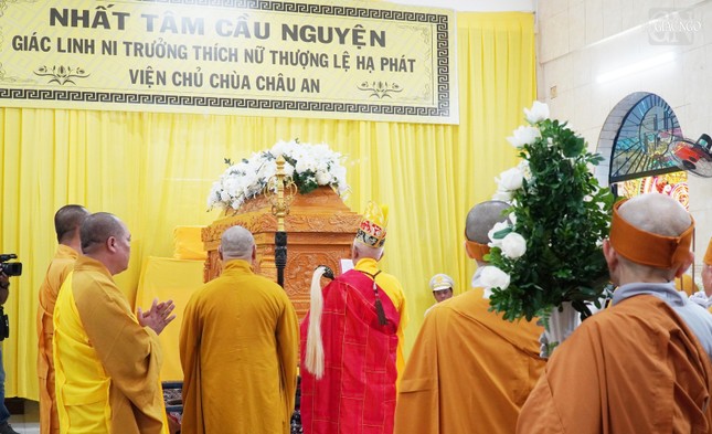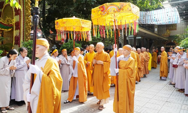 Sau lễ truy niệm, chư tôn đức Ban Tổ chức Lễ tang đã cung thỉnh Hòa thượng Thích Tịnh Thành phất trần; Ban Nghi lễ thực hiện các nghi thức di quan; môn đồ đệ tử cung tống kim quan Ni trưởng đến Đài hỏa táng Phước Lạc Viên (Bình Dương) để cử hành lễ trà-tỳ, trong tiếng đồng thanh niệm Phật của Tăng Ni, Phật tử.
