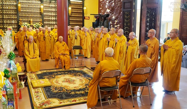 Dịp này, chư Tăng Ni Ban Trị sự GHPGVN Q.10, môn hạ tổ đình Ấn Quang đã thành kính đảnh lễ khánh tuế Đức Pháp chủ và chư vị Trưởng lão Hội đồng Chứng minh theo truyền thống thiền môn.